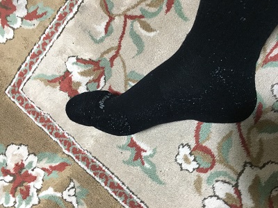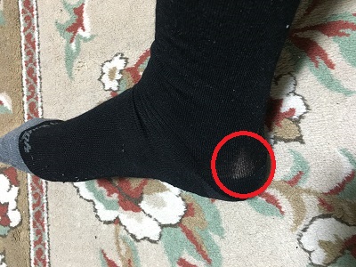 この靴下は一年前に交換した物ですが、前回穴が空いて交換した物もこのようにかかとが擦れていた気がします。