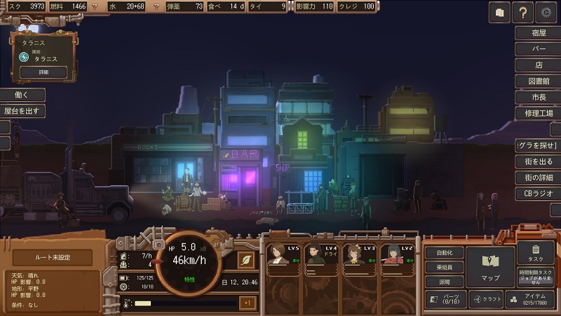 Normalモードは 全体的に優しめで、燃料や食料の管理・トラックの整備をしっかり行えば簡単にゲームオーバーになりません。 セーブからのやり直しもでき、ミスを気にせずマイペースで遊べます。仲間はそれぞれ役割や相性があり、チームの状態管理も重要。NPCとの交流や会話もゲームに味を加えています。